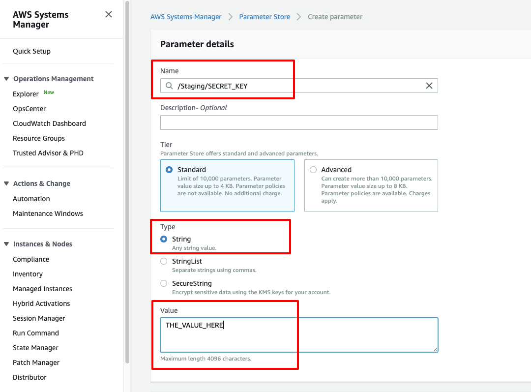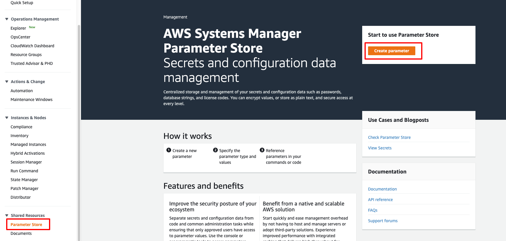 To do this, go to your AWS Console, search for System Manager, click on Parameter Store